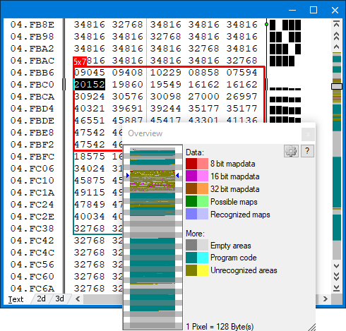 El código del programa, las áreas vacías, los mapas, etc. se reconocerán automáticamente. Se muestra una ventana de descripción general donde puede encontrar el contenido del archivo. El código del programa y las áreas vacías se mostrarán pálidas automáticamente.